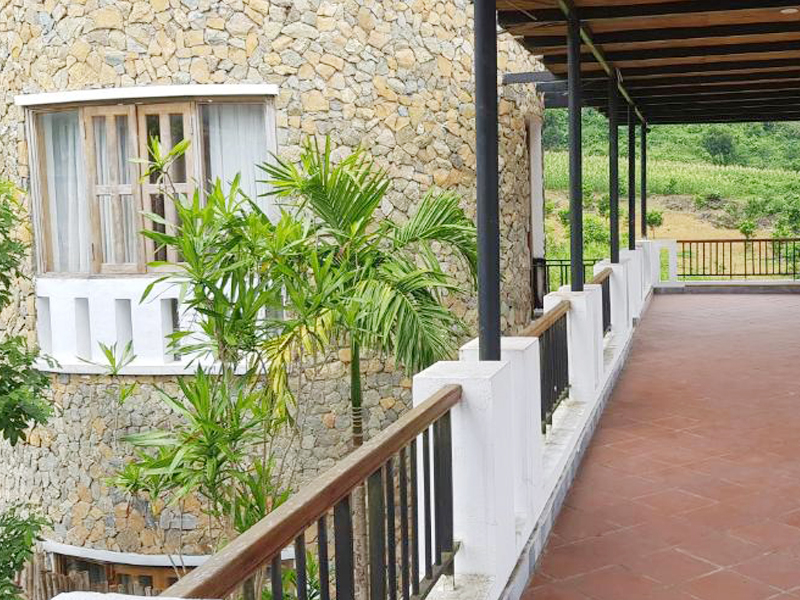 Các phòng đều có các ban công mở ra khung cảnh thiên nhiên độc đáo như suối tự nhiên, vườn đá tự nhiên hay thung lũng của vịnh Bakhan nhìn từ độ cao 500m.