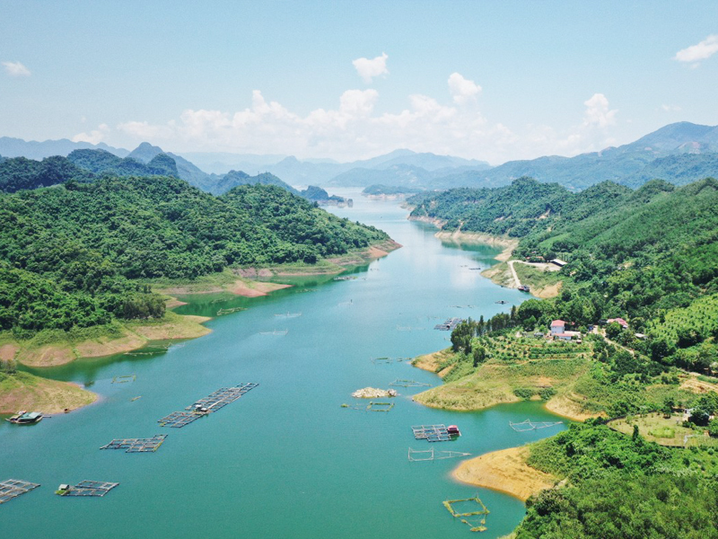 09:00 Hdv đưa quý khách đi lên thuyền du ngoạn lòng hồ Hòa Bình.