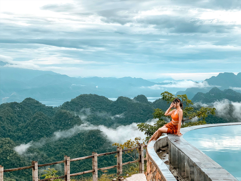 Bể bơi của Bakhan Village có thể coi là bể trên sườn núi lớn nhất vùng Tây Bắc với chiều rộng vô cực 38m.